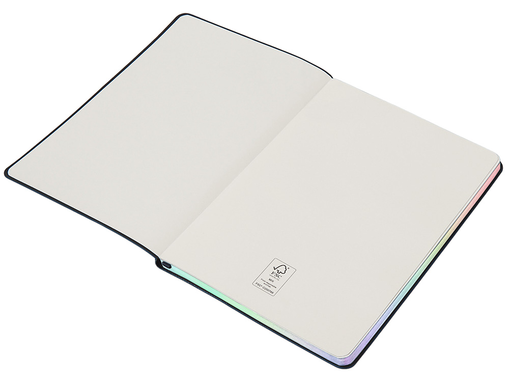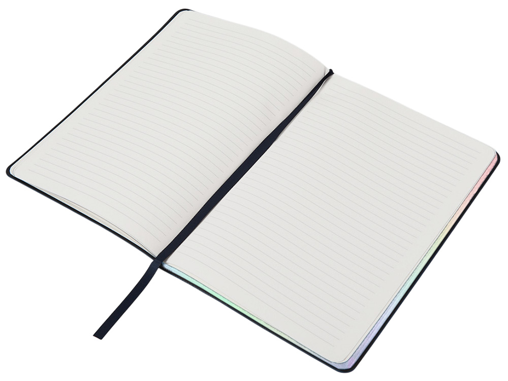 Блокнот А5 в гибкой обложке Fellini с голографическим срезом, темно-синий купить оптом и в розницу с нанесением логотипа в Новосибирске