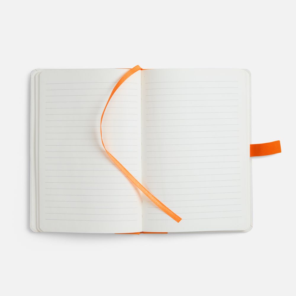Яркий цветовой акцент на тканевом корешке, петле-резинке для ручки и ляссе сразу привлекают внимание и добавляют MilkMake радостной энергии. Особенное удобство состоит в том, что петля для ручки проходит через обложку: так легко закрыть блокнот, чтобы защитить свои записи. Аккуратная линовка не отвлекает от самого главного: идей и мыслей, которые так хочется сохранить на бумаге.