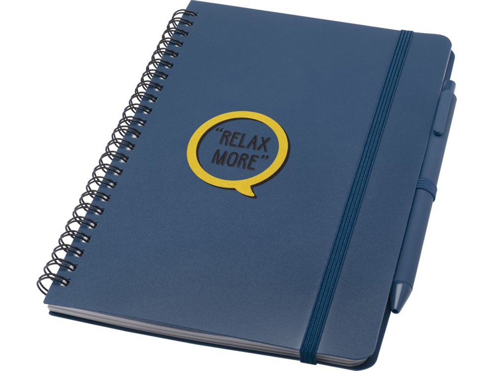 Блокнот Thalaasa формата A5 в твердой обложке изготовлен из переработанного океанического пластика и содержит 80 линованных листов кремовой бумаги плотностью 70 г/м². Блокнот имеет закругленные углы, эластичную застежку и петлю для ручки. Шариковая ручка с черными чернилами также изготовлена из переработанного океанического пластика. Длина непрерывной линии: 1000 метров. Размер пера: 1,0 мм.