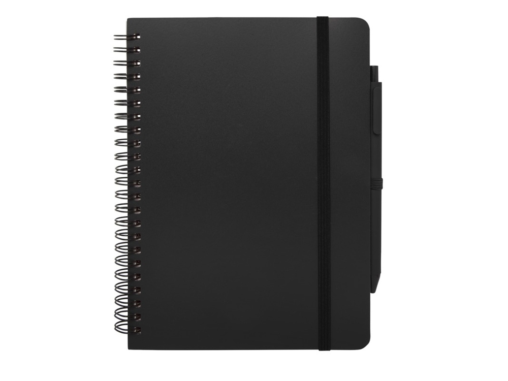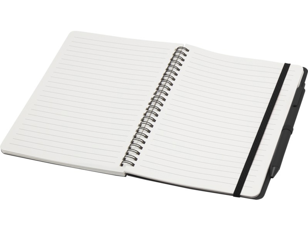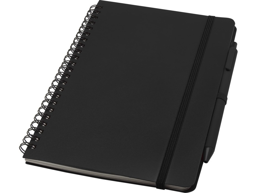 Блокнот Thalaasa формата А5 в твердой обложке из океанического пластика с шариковой ручкой - сплошной черный купить оптом и в розницу с нанесением логотипа в Новосибирске