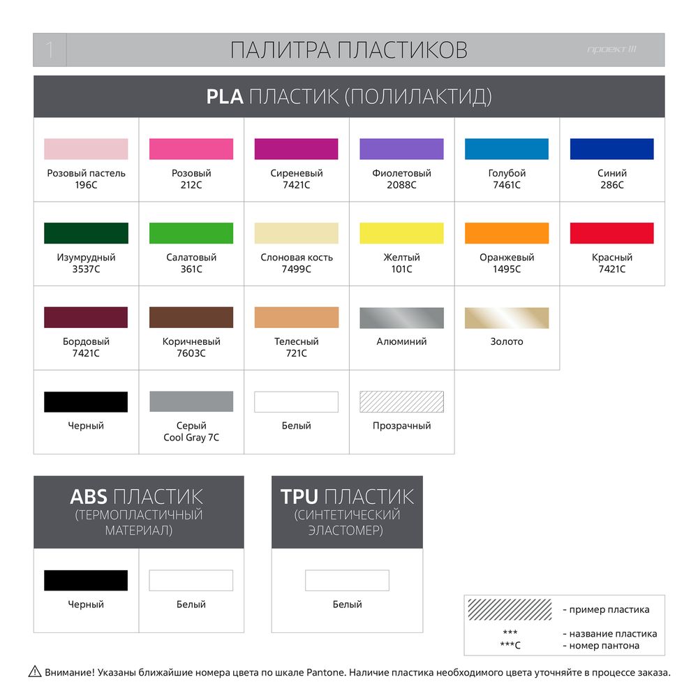 Отправляя запрос, укажите в поле «Примечание» формы заказа цвет пластика. Варианты цветов можно посмотреть в разделе «Фотографии».