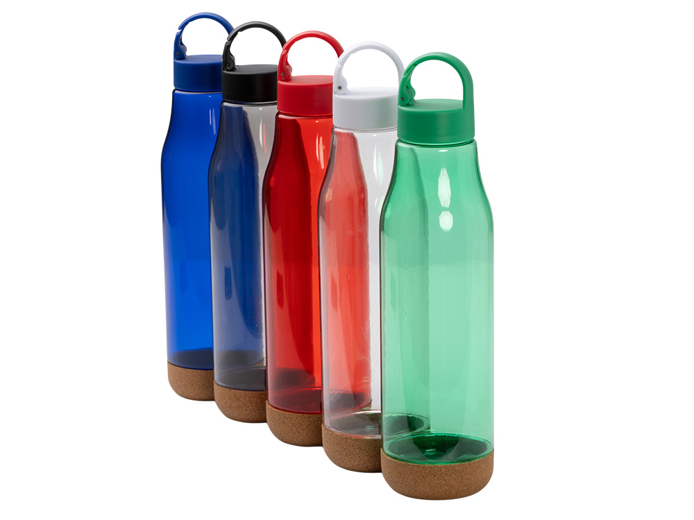 Бутылка с пластиковым корпусом и пробковым дном. Ручка для переноски с карабином на крышке. Объем: 720 мл. Упаковка: эко-дизайн.
