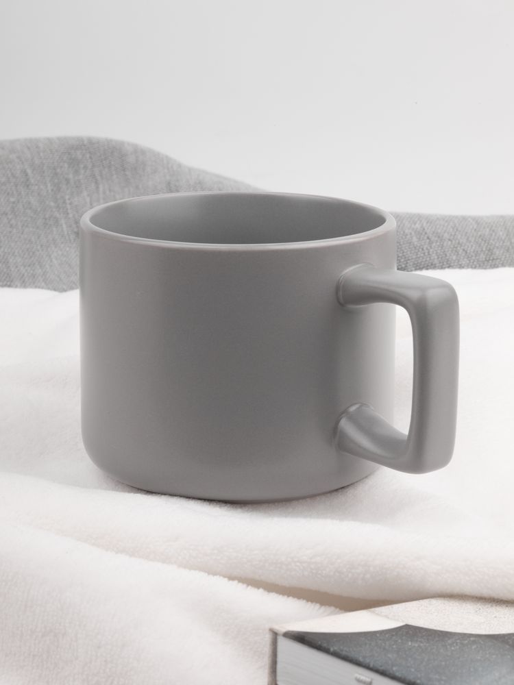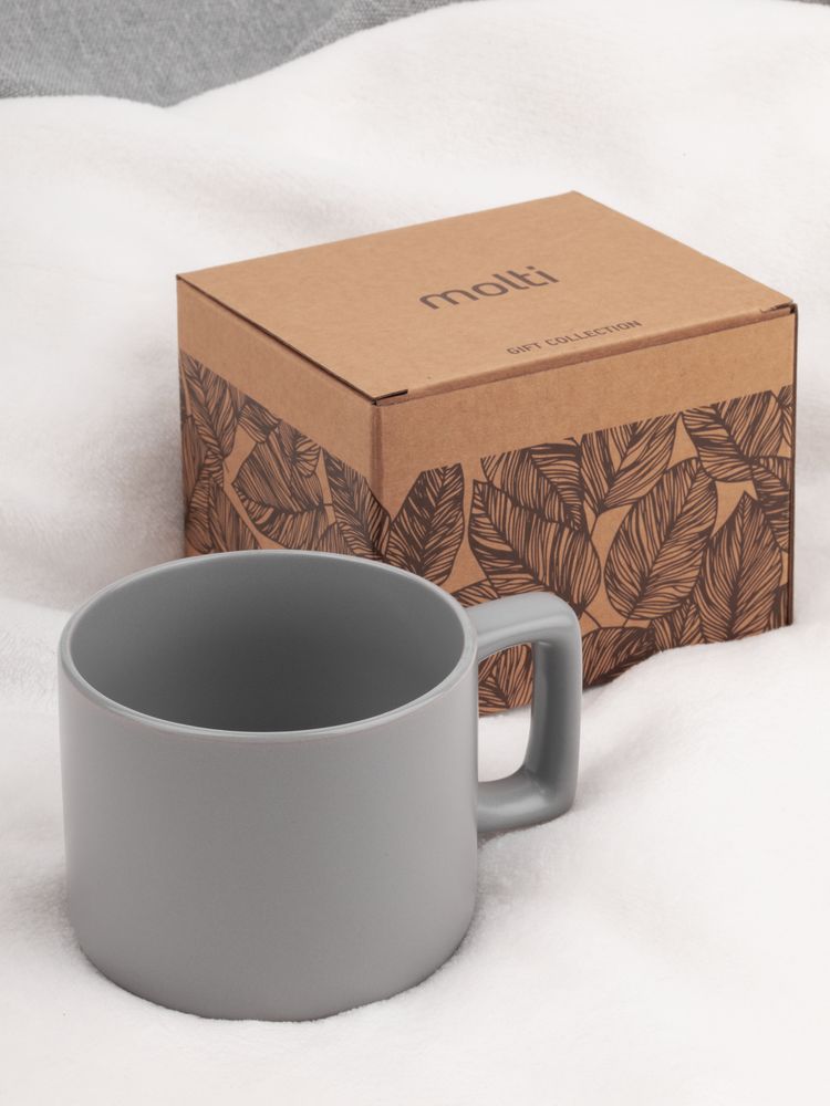 Чашка Jumbo в коробке матовая, светло-серая купить оптом и в розницу с нанесением логотипа в Новосибирске