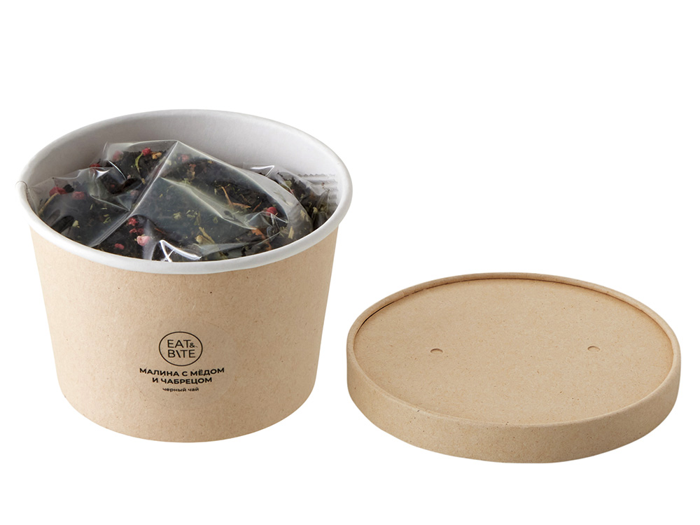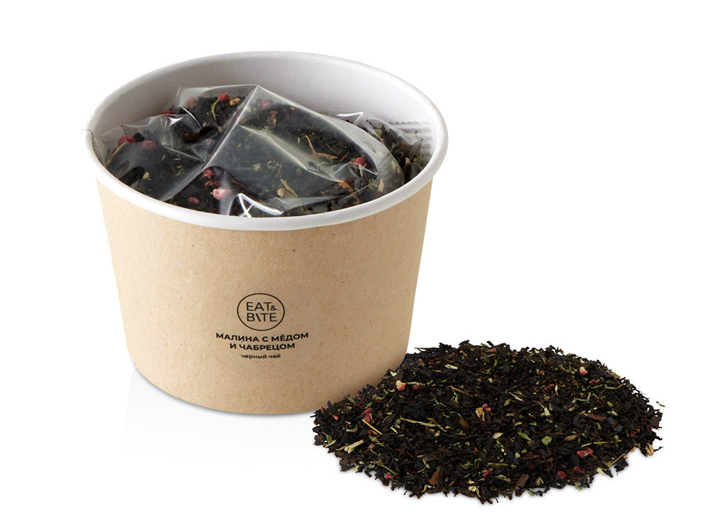 Чай черный Малина с медом и чабрецом в картонном стаканчике, 50 гр. купить оптом и в розницу с нанесением логотипа в Новосибирске