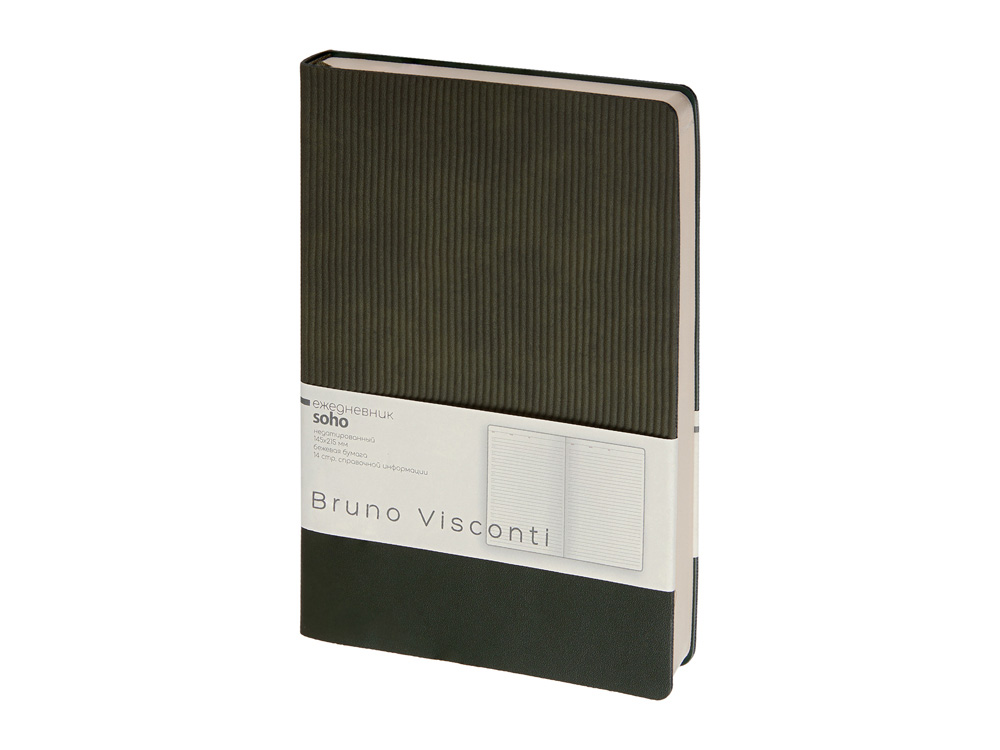 Гибкая мягкая обложка с эффектом муара, тактильно приятная с рифленой фактурой – главное украшение недатированного ежедневника Soho ТМ Bruno Visconti. Ляссе в цвет обложки как легкое дополнение к строгому, но элегантному образу. Никаких дополнительных деталей, а сколько благородства. Ежедневник формата А5 имеет внутренний блок из 272 страниц. Блок изготовлен из бежевой бумаги плотностью 70 г/м2 и содержит: Покрытие soft touch придает обложке мягкость и создает приятные тактильные ощущения в работе с ежедневником. • раздел для планирования с линовкой и указанием времени с интервалом в один час; • страница для персональных данных; • страницы для планирования рабочих и личных дел по месяцам; • 10 страниц оригинальной справочной информации (вино и еда, мода, драгоценности, как выбирать подарок, методы борьбы со стрессом).