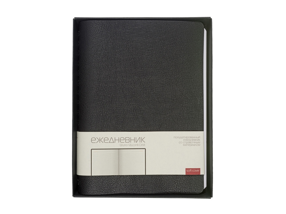 Полудатированный деловой ежедневник ORBIT формата А5 от Bruno Visconti – идеальное решение для динамичных деловых людей, которым важны комфорт, мобильность и качество. Гибкая (flex) обложка из фактурной высококачественной экокожи, скругленный угол обложки и блока, полускрытый гребень, позволяющий держать ежедневник открытым на столе и работать с комфортом, делая записи, серебряный обрез - все это визитная карточка ежедневника ORBIT от Bruno Visconti. Внутренний блок ежедневника - 416 страниц. Он изготовлен из высококачественной белой бумаги, плотностью 70 грамм. Раздел для планирования рабочего времени имеет линовку серого цвета с интервалом времени в один час. Дополнительно ежедневник содержит справочную информацию на 21 странице и телефонную книгу на 26 страницах.