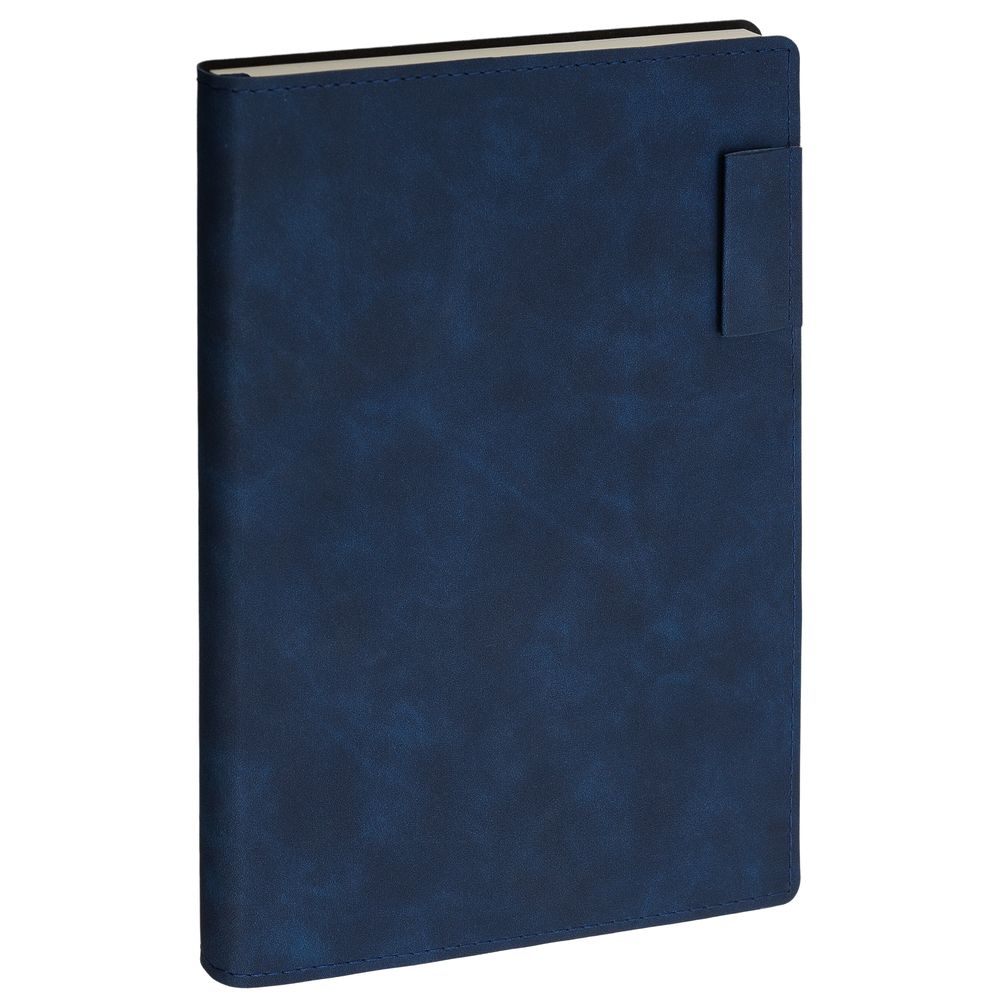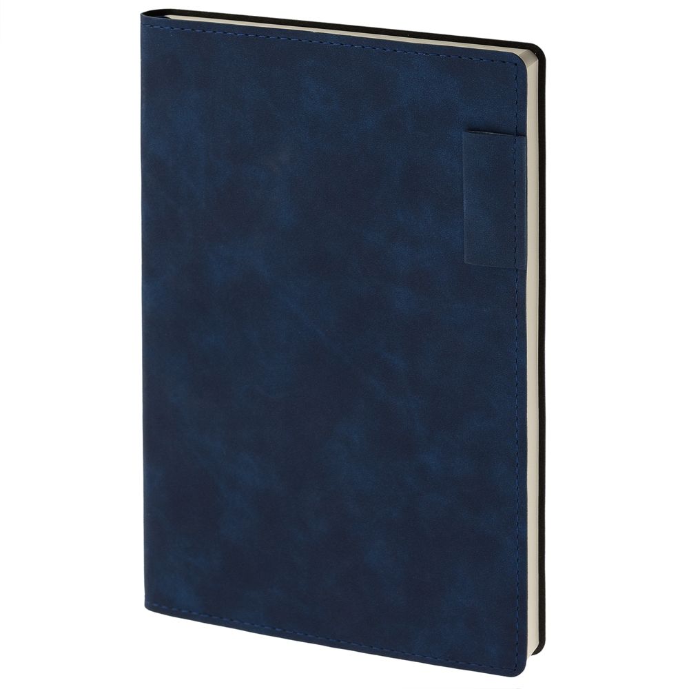 Ежедневник  17х24 см, с гибкой обложкой, выполнен из материала Nubuck Touch, темно-синий ХХ, дополнен петлей-лейблом для ручки и двойным ляссе в цвет материала.