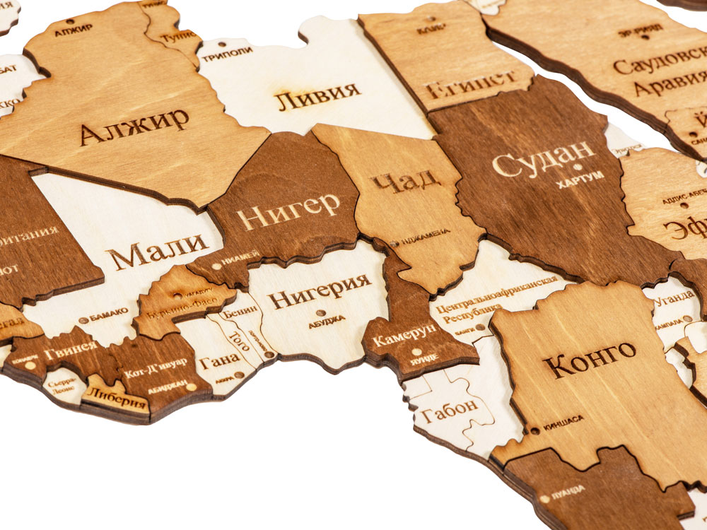 Настенная сборная карта мира из березовой фанеры — прекрасное украшение как офиса, так и квартиры. Карта крепится на стену при помощи двустороннего скотча, который уже прикреплен с тыльной стороны каждого элемента. А еще можно оживить карту корабликами и самолетами, которые тоже идут в комплекте, устремив их к тем странам, куда вы бы хотели полететь. Карта состоит из фрагментов, которые можно расположить как близко друг к другу, так и на расстоянии — все зависит от вашего вкуса и желания. Для сборки карты приложена специальная книжечка-инструкция с последовательностью по шагам. Карта максимально детализирована: города, столицы, границы и названия четко выделяются и легко различимы благодаря гравировке. Страны имеют разный оттенок бежевого, чтобы их было проще визуально отличить друг от друга издали. Важный плюс — карту можно брендировать нанесением на шильд, который крепится на коробку, или же на саму коробку. - брендирование на шильд для коробки или на саму коробку - подарок для детей и взрослых - поставляется в крафтовой коробке - самолеты и корабли в комплекте - страны на картах запечатлены в границах, актуальных на 31.08.2022 - легкая сборка