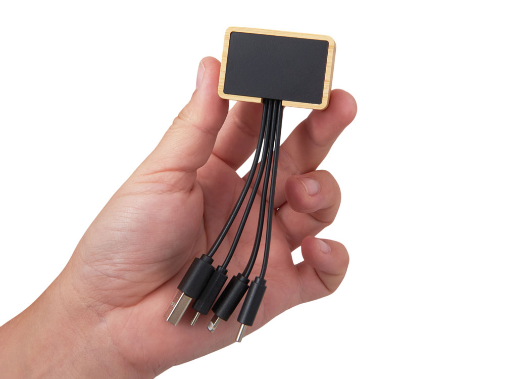 Универсальный зарядный кабель 3-в-1 — элегантное решение для владельцев любых гаджетов. С тремя разъемами (USB-C, micro USB, Lightning), он заменяет три кабеля в одном компактном корпусе, выполненном из натурального бамбука и переработанного ABS-пластика. Это не просто практичный аксессуар — это экосознательный стиль, который подчеркнёт ваш вкус и заботу об окружающей среде. Встроенная белая подсветка с возможностью нанесения логотипа добавляет изюминку: ваш бренд или инициалы мягко светятся при подключении, создавая эффект премиальности и индивидуальности. Идеален для повседневного использования, путешествий и в качестве запоминающегося корпоративного подарка. - 3 разъёма в одном — USB-C, micro USB и Lightning для любых устройств - Экологичный корпус — натуральный бамбук + переработанный ABS-пластик - Логотип с подсветкой — ваш бренд мягко светится при зарядке, усиливая узнаваемость - Компактный и стильный — всегда под рукой, в сумке, на столе или в путешествии - Идеальный корпоративный подарок — полезный, экологичный и персонализированный гаджет