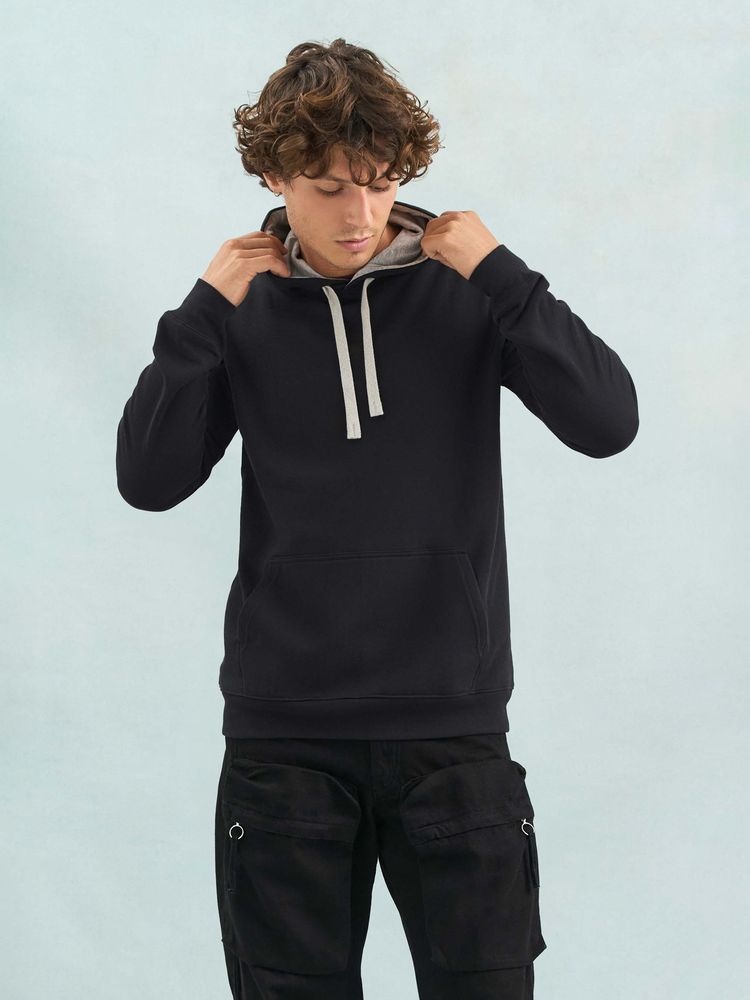 Худи унисекс Cameron, черное с серым меланжем купить оптом и в розницу с нанесением логотипа в Новосибирске