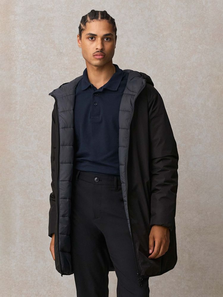 Двусторонняя утепленная парка с капюшоном. Одна сторона гладкая с водоотталкивающим покрытием, другая — стеганая. Стильная, удобная и функциональная, эта парка станет идеальным решением как для подарка, так и для повседневного использования.