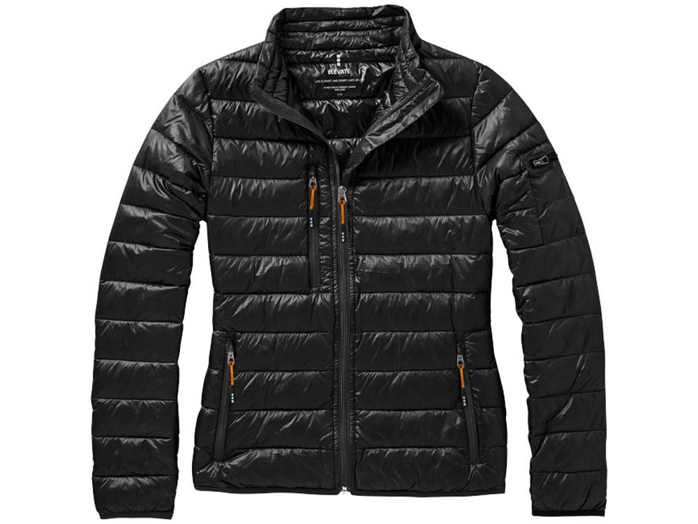Женская легкая куртка Scotia. Стандартный покрой. Ткань не пропускает пух. Карманы для рук и нагрудный на молнии. Карман на рукаве на молнии можно использовать для нанесения. Резинка на манжетах и внизу куртки. Ремешки на собачку (второй комплект в цвете антрацит). Внутренний противоветровой клапан и защита подбородка. Ткань дышащая, ветронепроницаемая и влагоотталкивающая. Отражающий лого сзади. Легкий пуховик. Ткань из 100% нейлона с матовым и блестящим водоотталкивающим покрытием, 20D. 80% пух и 20% перо. 115 г/м².