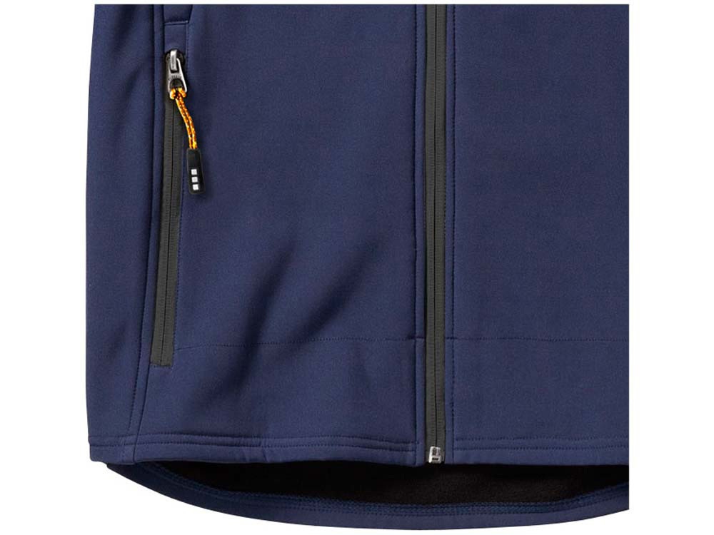 Женская куртка софтшел Langley. Стандартный покрой. Отстегивающийся капюшон на шнурках со стопперами. Обратная молния по центру и на карманах для рук. Регулируемые манжеты на липучках. Отражающий лого сзади. Водонепроницаемый 5000 мм. Дышащий 3000 мм. Ткань эластична в четырех направлениях. Ветронепроницаемая. Ремешки на собачку (второй комплект в цвете антрацит). Ткань из 90% полиэстера и 10% эластана, склеенного со 100% полиэстеровым микрофлисом. 300 г/м².