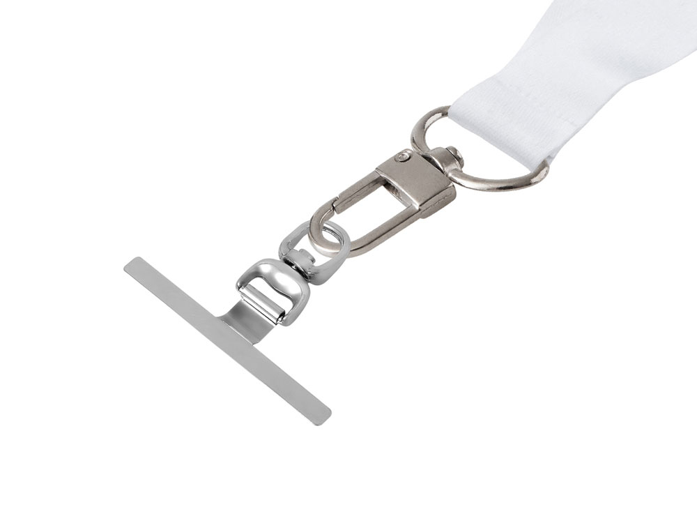 Ланъярд 2,5 см под сублимацию с трендовым карабином, замком обрыва и металлическим держателем для телефона купить оптом и в розницу с нанесением логотипа в Новосибирске