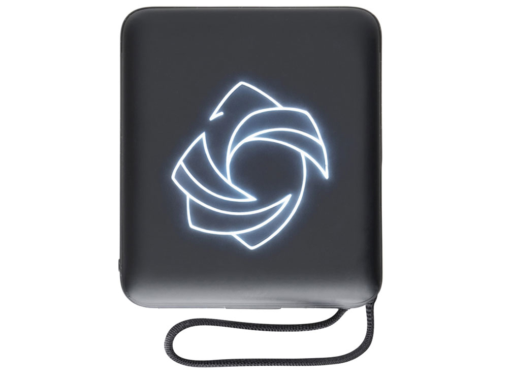 Магнитный беспроводной внешний аккумулятор c подсветкой лого Энчант, 10000 мАч, черный купить оптом и в розницу с нанесением логотипа в Новосибирске