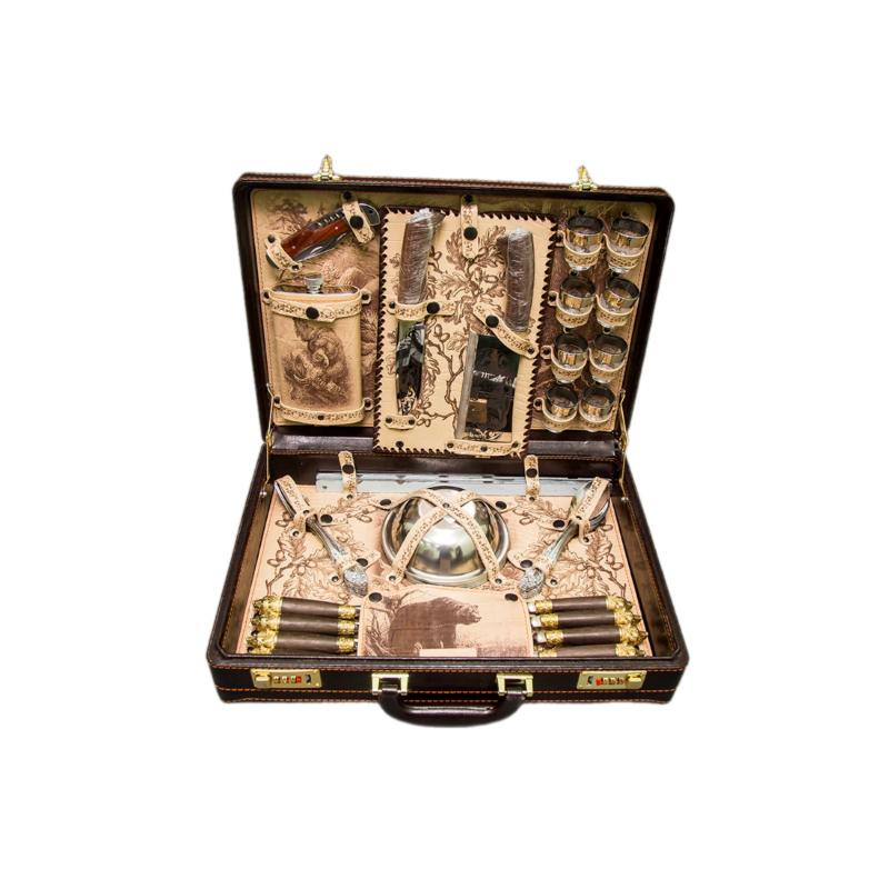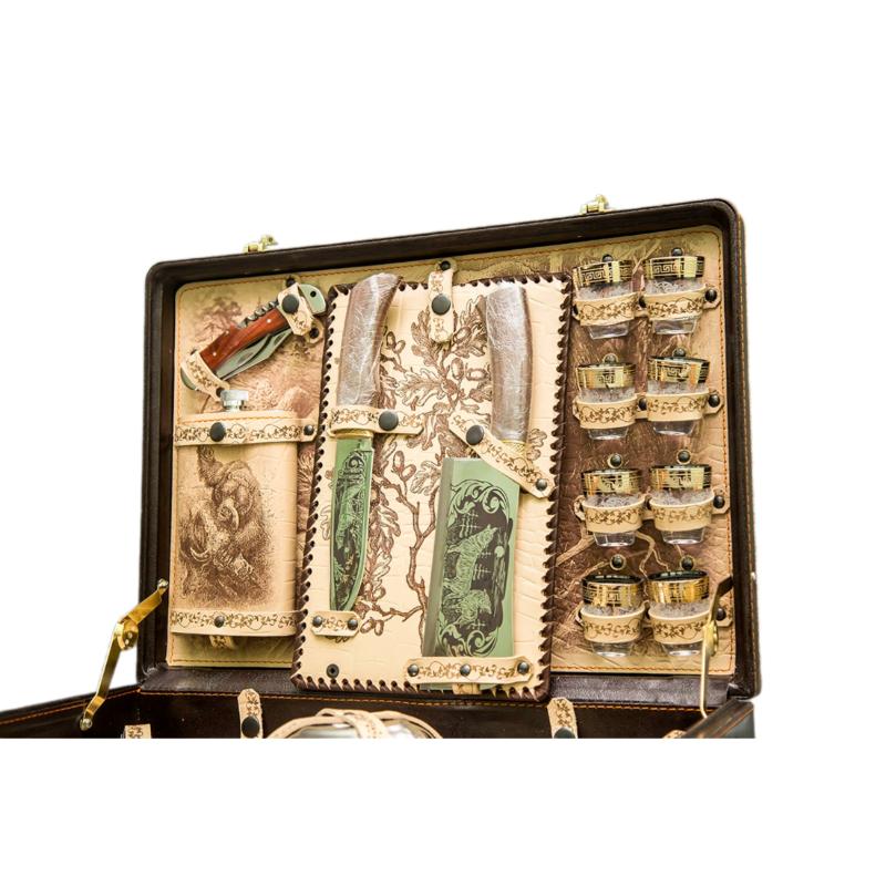 | Комплектация | Фляжка 0.45 - 1 шт., стопка — 8 шт., ложка - 8 шт., вилка - 8 шт., нож складной - 1 шт., тарелка - 8 шт., нож разделочный - 1 шт., тяпка - 1 шт., мангал - 1 шт., шампура (литье) - 8 шт. |