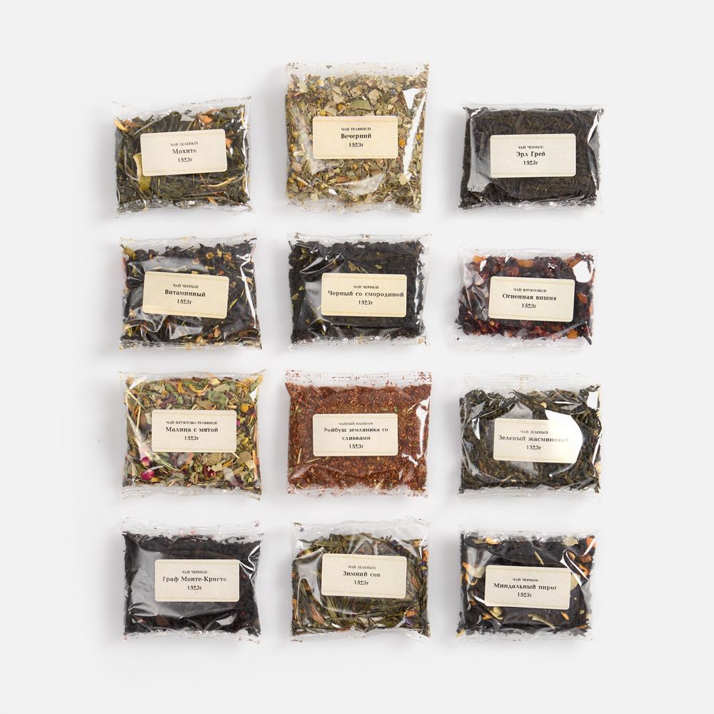 • Черный со смородиной. Состав: черный чай среднелистовой, лист черной смородины, черная смородина сублимированная, красная смородина сублимированная, ароматизатор «Смородина».