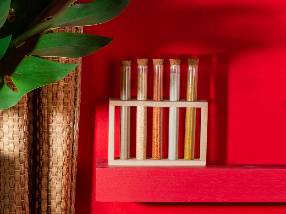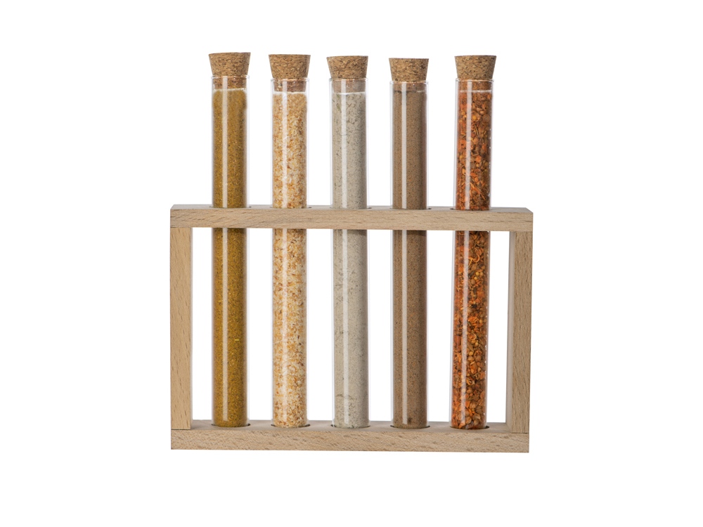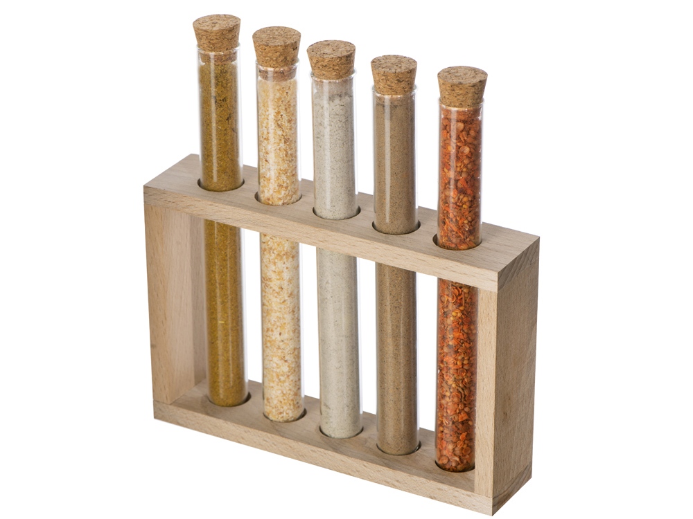 Размер товара (см) подставка- 15 х 3,5 х 10 см, колба со специями- d1,6 х 16