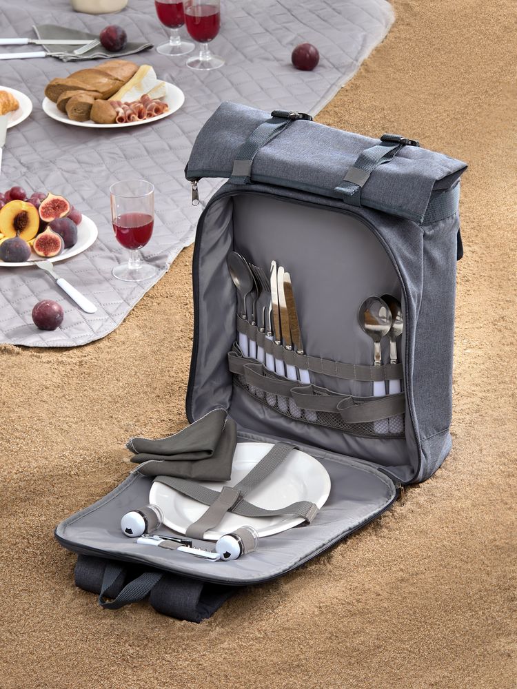 Набор для пикника Picnivo на 4 персоны, темно-серый меланж купить оптом и в розницу с нанесением логотипа в Новосибирске