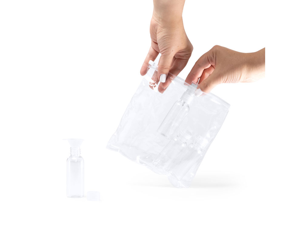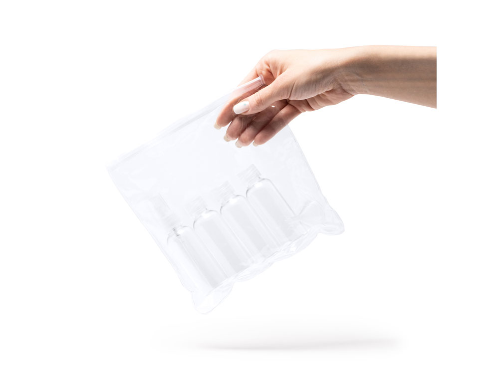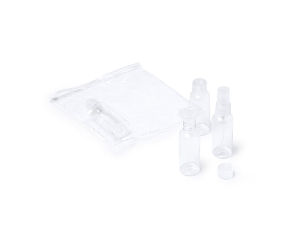 Набор дорожный ARNOLD (3 флакона, 1 спрей и 1 адаптер), прозрачный купить оптом и в розницу с нанесением логотипа в Новосибирске