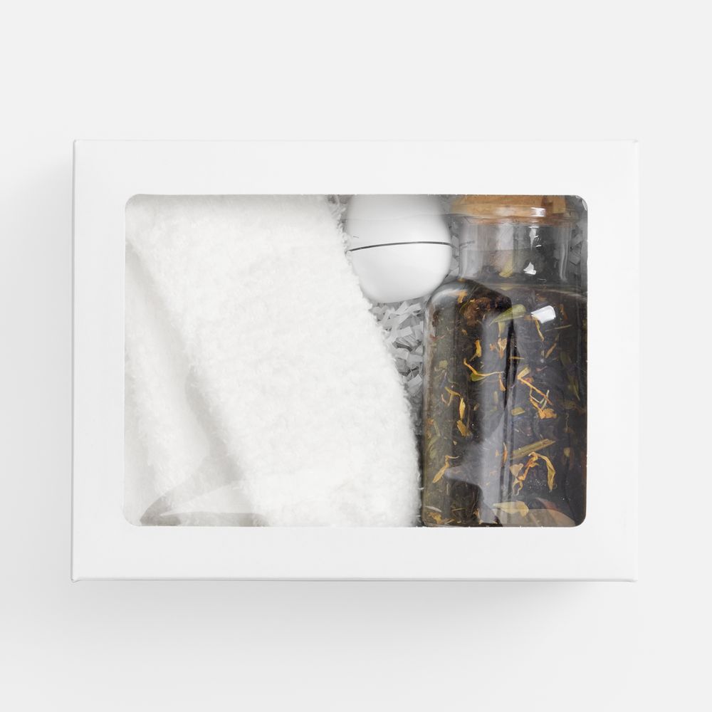 Это базовые элементы заботы — мягкие носки и бальзам для губ — и уникальный сорт чая, задающий особое настроение. Идеальное решение для всех, кто ценит спокойные моменты уединения и эстетику повседневных ритуалов.