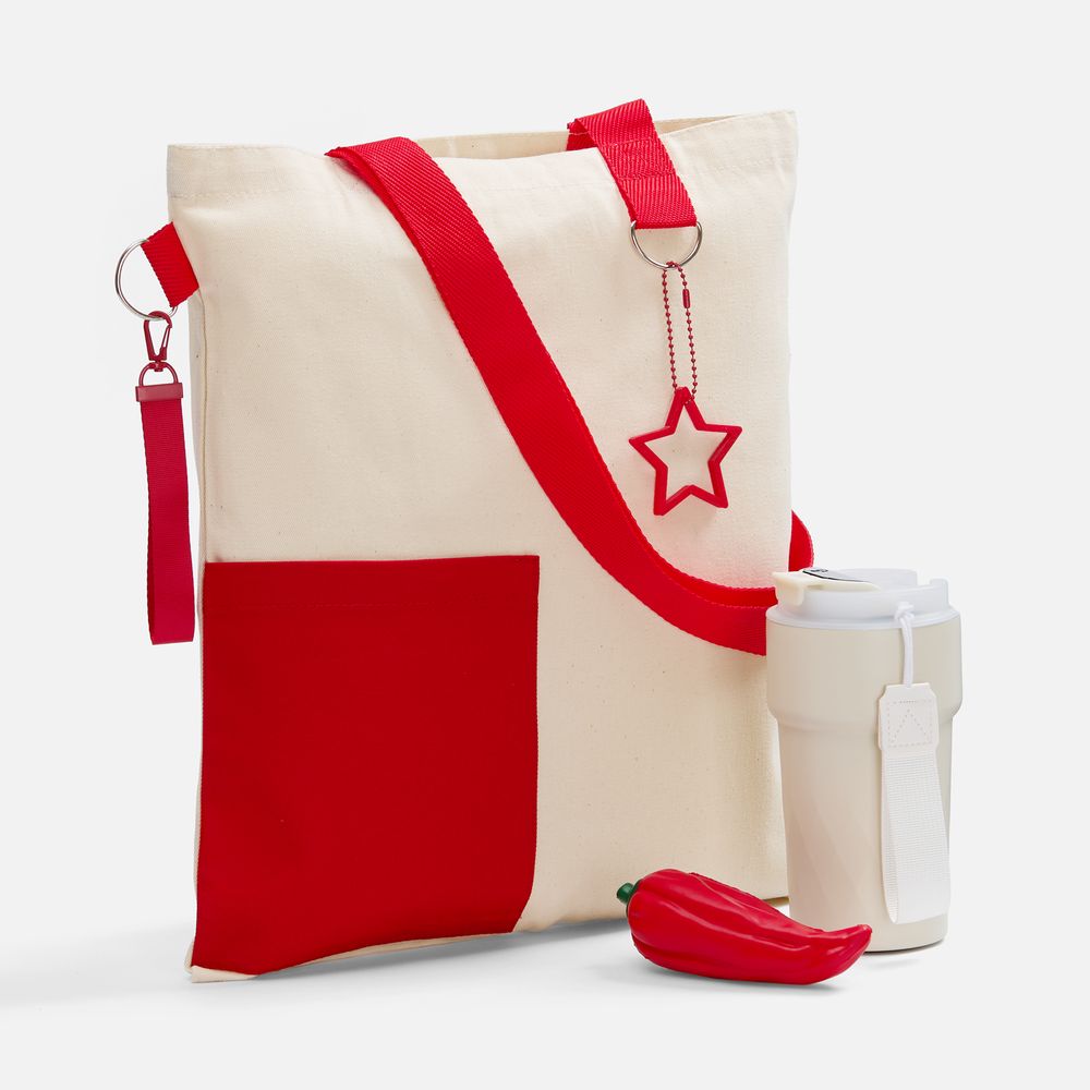 | Материал | термостакан - металл, пластик; шопер - хлопок 100%, плотность 240 г/м²; саржа; сквиши-антистресс - полиуретан; подвеска - пластик; ремувка - полиэстер 100%, металл; цепочка - металл |