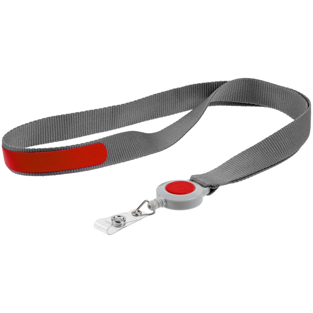 • Лента для бейджа с ретрактором Devon, серая с красным