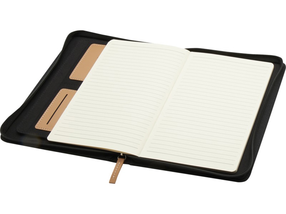 Папка Nomumi формата А5 с закругленными углами — удобный и необходимый предмет в офисе, изготовленный из переработанного пластика. Содержит 64 листа кремового цвета плотностью 80 г/м2, застежку-молнию, петлю для ручки и карман-гармошку. Переработанный PET пластик, бумага.
