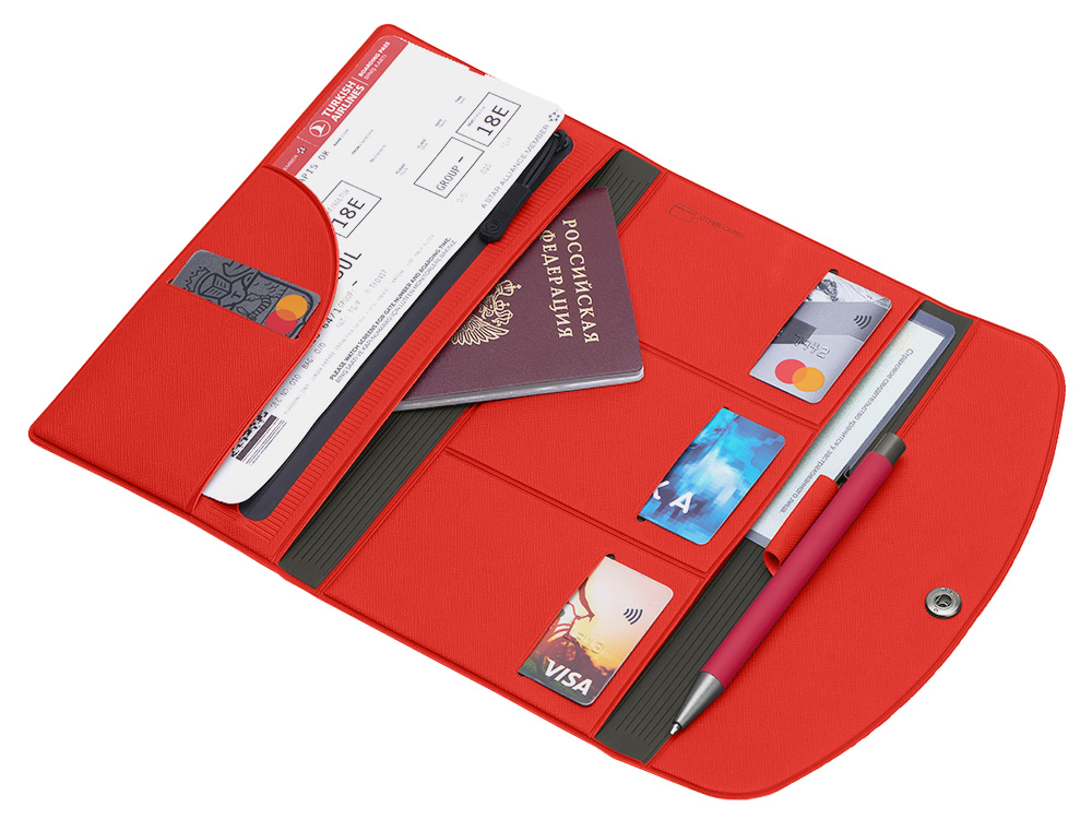 Этот стильный и практичный дорожный органайзер Favor станет незаменимым помощником в любом путешествии! С ним всё необходимое будет всегда на своих местах. Современный дизайн и продуманная конструкция сделают путешествие еще более комфортным и беззаботным. Преимущества: - Удобные отделения для паспорта, билетов, карт и страхового полиса. - Дополнительное отделение на молнии для мелочи или купюр. - Надёжная застежка на кнопку. - Компактный размер. - Петля для ручки.