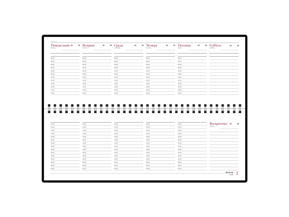 Недатированный планинг размером 305*130 мм состоит из 128 страниц с креплением на металлическом гребне. Используется высококачественная белая бумага плотностью 70 г/км. Полезная справочная информация на 14 страницах пригодится в бизнесе и повседневной жизни (телефонные коды России и мира, праздники, единицы измерения, таблицы размеров, часовых поясов и т.д.)