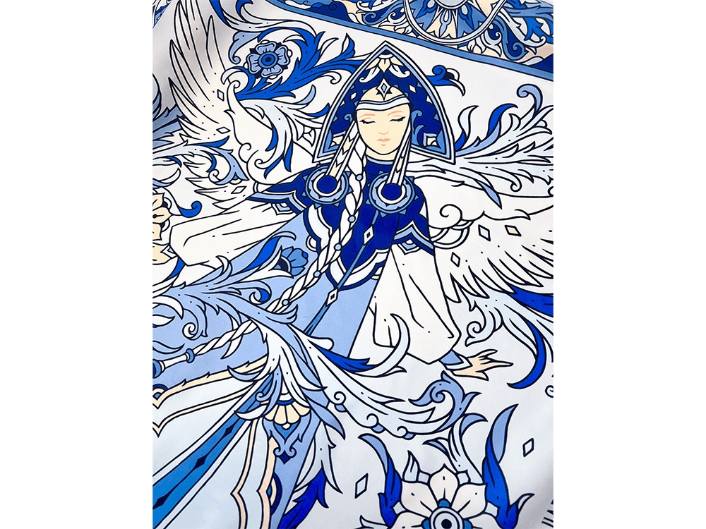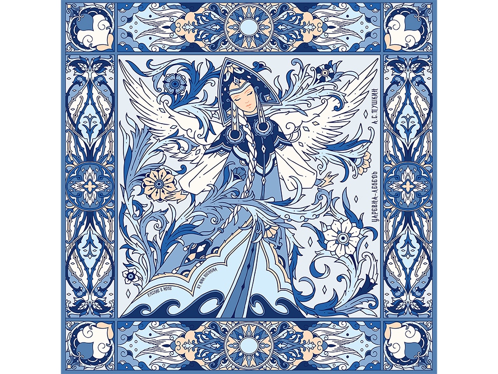 Дизайнерский платок Царевна Лебедь от Нины Ручкиной стал воплощением сказочного персонажа, прославленного великим и талантливым романтиком и поэтом — А. С. Пушкиным. Именно он впервые подарил нам образцы художественной русской эстетики, исходящей из самой глубины русской души. В центре авторского принта — удивительной красоты женщина с белоснежными крыльями, наделенная магическими способностями и житейской мудростью. Оригинальное сочетание тонов, цветочных орнаментов и русского колорита делают аксессуар нежным и самобытным. Платок с прекрасной Царевной Лебедь подойдет изящным и романтичным натурам, предпочитающим классику и традиционный русский стиль. Он станет деликатным дополнением как повседневного, так и вечернего образа утонченной леди. Над дизайном работали художники: Нина Ручкина, Мила Лосенко.
