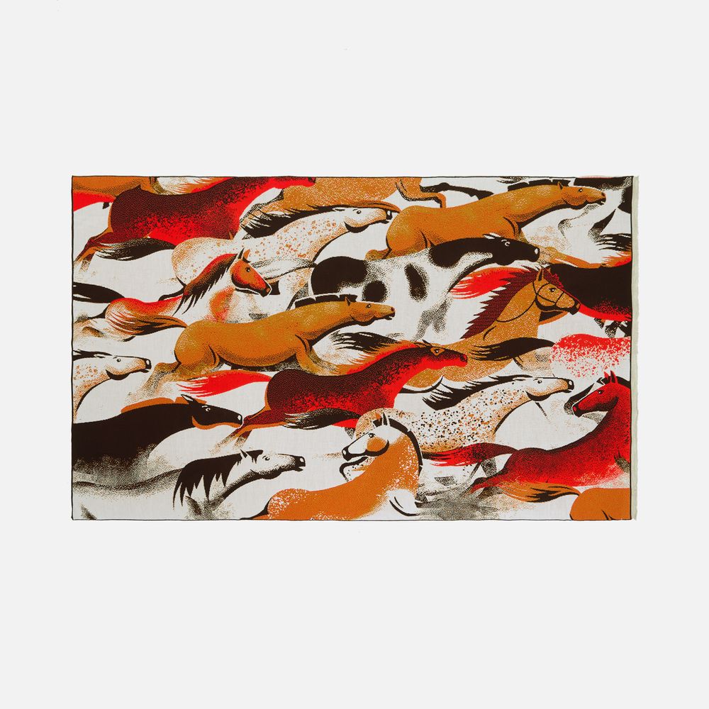 Плед «Огнегривые» масштабно воплощает символ 2026 года — Красную Огненную Лошадь. Табун лошадей, словно охваченных пламенем или заревом, в едином порыве смело несется вперед — навстречу новому, к общей манящей цели, мерно отбивая ритм и наслаждаясь свободой.
