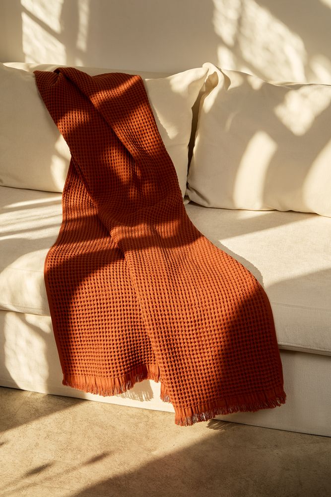 Вафельный плед Elenglect — естественная простота и тактильная гармония.