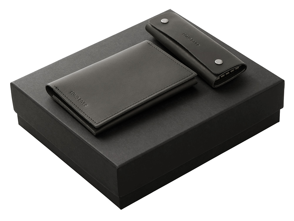 Подарочный набор Long River: обложка для паспорта, ключница, черная коробка