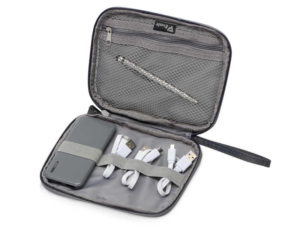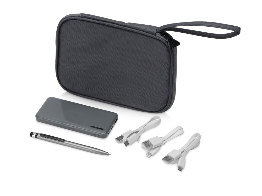 Комплектность органайзер для проводов 18 х 14 х 2 см, внешний аккумулятор 5000 mAh 5,6 х 12,1 х 1,3 см, ручка-стилус шариковая d0,8 х 12,8 см