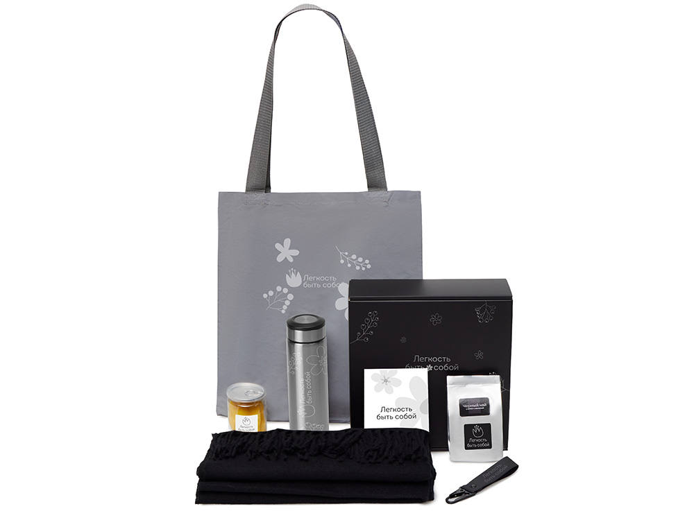 Подарочный набор Re:f. Walk с палантином, шоппером и термосом, черный