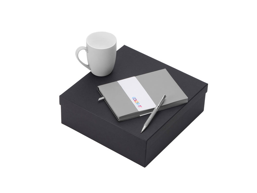 Color It — линейка, в которую входят хиты мерча в десяти самых популярных цветах. Еще никогда собрать сет под свой брендбук не было так просто. Широкая цветовая палитра серии позволяет создать идеальный набор в едином оттенке Pantone. Все товары имеют тактильно приятное покрытие софт-тач. Сет поставляется в коробке: мы продумали все, включая подарочную упаковку, за вас — осталось нанести лого! Фарфоровая кружка с удобной ручкой брендируется методом гравировки, поэтому нанесение будет долговечным и не сотрётся при мытье кружки. Бизнес-блокнот в твёрдой обложке имеет ляссе в тон обложки и среза. Бумажный блок разлинован в линейку и выполнен из бумаги, полученной из древесины из специальных восполняемых лесных ресурсов, имеет сертификат FSC. Шариковая ручка имеет сменный стержень, поэтому такой мерч прослужит дольше обычной одноразовой ручки, долго напоминая о вас клиентам. - объём кружки: 300 мл; - блокнот А5 128 листов; - ручка с необычным слайдером; - подарочная упаковка из картона, оклеенного дизайнерской бумагой уже включена в набор
