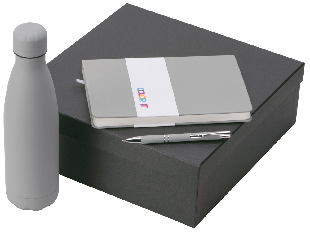 | Материал товара | блокнот - искусственная кожа с покрытием софт-тач, ручка - алюминий с покрытием софт-тач, термобутылка - нержавеющая cталь с покрытием софт-тач, коробка - картон |