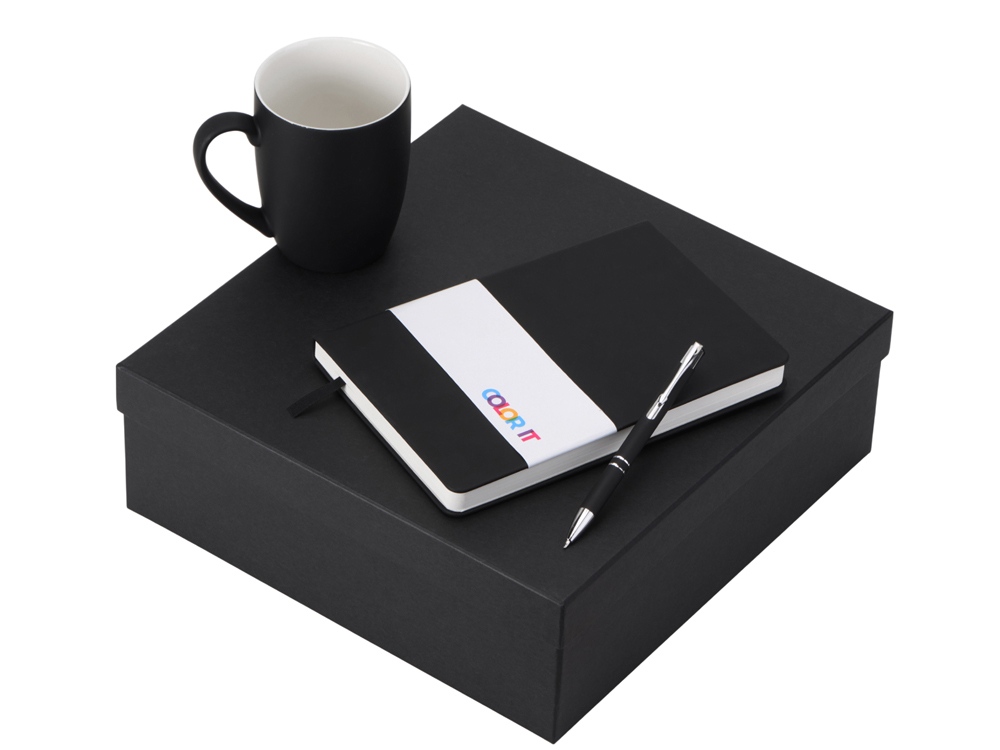 Color It — линейка, в которую входят хиты мерча в десяти самых популярных цветах. Еще никогда собрать сет под свой брендбук не было так просто. Широкая цветовая палитра серии позволяет создать идеальный набор в едином оттенке Pantone. Все товары имеют тактильно приятное покрытие софт-тач. Сет поставляется в коробке: мы продумали все, включая подарочную упаковку, за вас — осталось нанести лого! Фарфоровая кружка с удобной ручкой брендируется методом гравировки, поэтому нанесение будет долговечным и не сотрётся при мытье кружки. Бизнес-блокнот в твёрдой обложке имеет ляссе в тон обложки и среза. Бумажный блок разлинован в линейку и выполнен из бумаги, полученной из древесины из специальных восполняемых лесных ресурсов, имеет сертификат FSC. Шариковая ручка имеет сменный стержень, поэтому такой мерч прослужит дольше обычной одноразовой ручки, долго напоминая о вас клиентам. - объём кружки: 300 мл; - блокнот А5 128 листов; - ручка с необычным слайдером; - подарочная упаковка из картона, оклеенного дизайнерской бумагой уже включена в набор