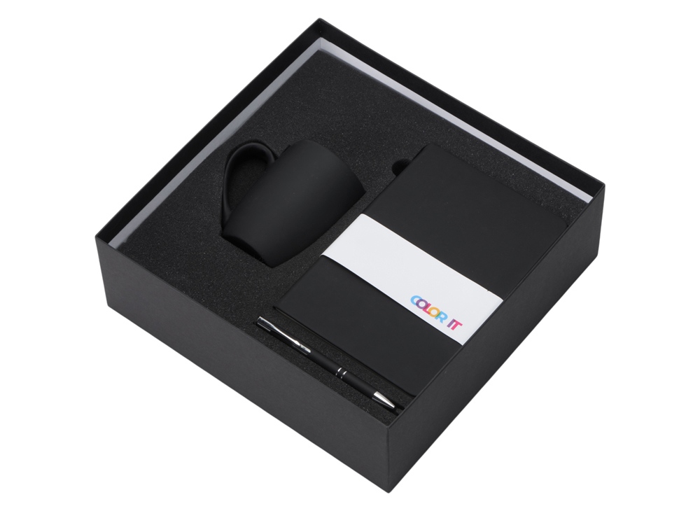 | Материал товара | блокнот - полиуретан с покрытием софт-тач, картон, ручка - алюминий с покрытием софт-тач, кружка - фарфор с покрытием софт-тач, коробка - картон |