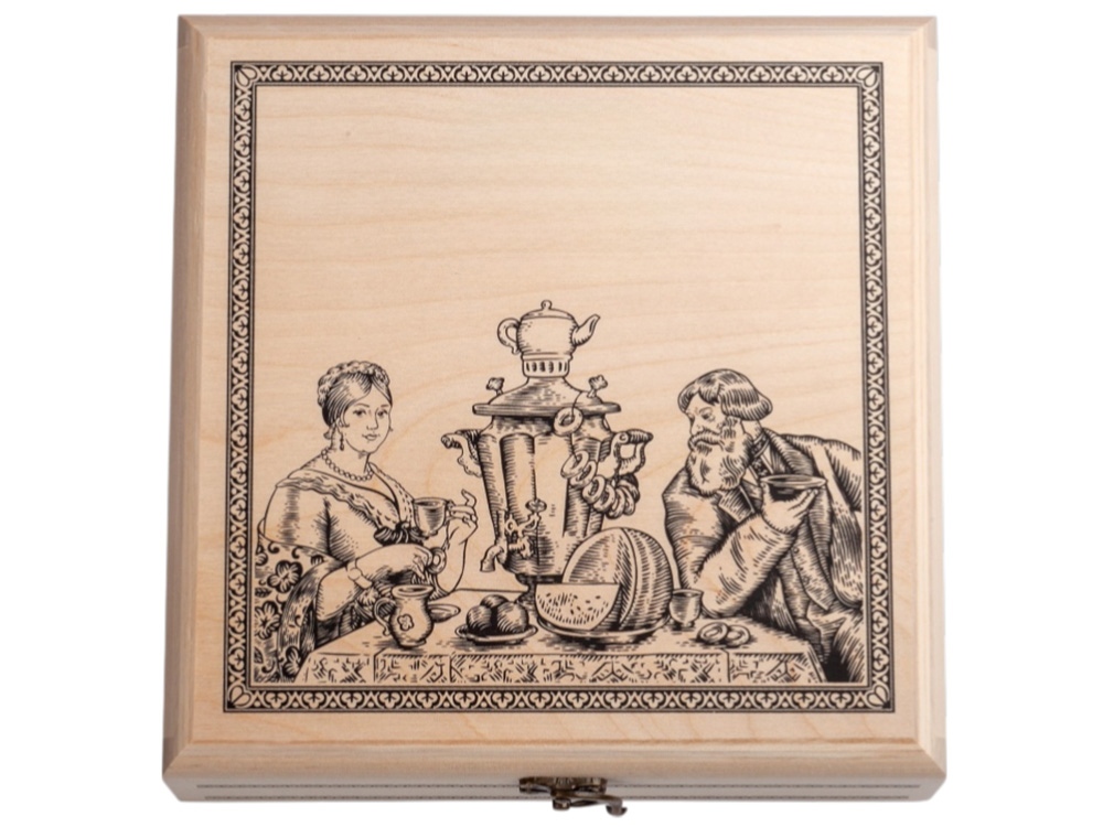 Подарочный набор с пакетированным чаем в деревянной шкатулке без лого купить оптом и в розницу с нанесением логотипа в Новосибирске