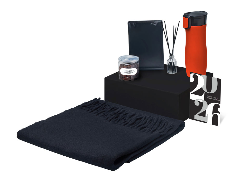 Новый год — новые моменты, которые хочется прожить по-настоящему. Вспомните детство, когда мы никуда не спешили, наслаждались каждым мгновением и делали то, что нам нравилось. Наборы серии Re: напоминают: важнее всего человек, а не его роль. Они дарят возможность замедлиться, отложить гаджеты и насладиться настоящим. Пусть новогоднее время станет паузой, наполненной тишиной, теплом и моментами, которые восстанавливают перед новым годом. Каждый набор — как мини-ритуал: согреться, замедлиться, почувствовать себя, поблагодарить и восстановиться после года, полного скорости, дедлайнов и шума. Это не о деловом спасибо — это о настоящем внимании. Это о том, чтобы сказать: Я вижу, сколько ты сделал. А теперь — время для тебя. Набор Re:Harmony — о начале дня с теплом и гармонией. Укутайтесь в мягкий палантин, возьмите термокружку с ароматным кофе и отправляйтесь на прогулку. Сделайте паузу, вдохните зимний аромат, подышите и подумайте о том, что для вас важно. Миндаль в шоколадной глазури добавляет сладкую нотку удовольствия, превращая каждый момент в маленький ритуал спокойствия и уюта. Диффузор с ароматом еловых шишек и хвои наполнит пространство ощущением зимнего леса и создаст атмосферу спокойствия и полной гармонии.