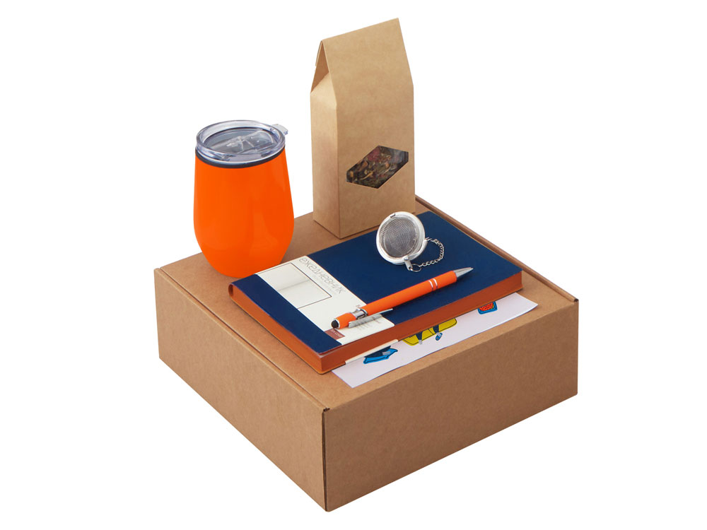 Набор Writea станет отличным подарком для сотрудников, клиентов и партнёров, подчеркнёт внимание к их комфорту и заботу о деталях. Он уместен как корпоративный подарок на праздники, юбилеи и деловые мероприятия, так и в качестве welcome-набора для новых коллег. Набор объединяет всё необходимое для комфортного рабочего дня: Ежедневник для идей, заметок и составления рабочих планов на день. В ежедневнике есть полезная справочная информация; Ручка, которая всегда под рукой; Практичная термокружка Pot отлично подойдет для использования как дома, так и в офисе, сохраняет тепло до 3-х часов; Ситечко для заваривания — незаменимая вещь для любителей чая. Оно помогает сохранить истинный вкус и аромат напитка, позволяя наслаждаться настоящим листовым чаем без лишних хлопот. Компактное и удобное, ситечко подходит для дома, работы, путешествий или отдыха на природе; Чай Малина с мятой - идеально подходит для вечернего расслабления после насыщенного дня; Набор стикеров — для ярких акцентов и персонализации вещей; Универсальный ложемент обеспечивает аккуратное размещение и надёжную фиксацию элементов, делая набор эффектным и презентабельным при вручении. Дополнительное преимущество — набор доступен в конструкторе наборов: компоненты можно заменить и собрать индивидуальный вариант под стиль компании или вкусы получателя.