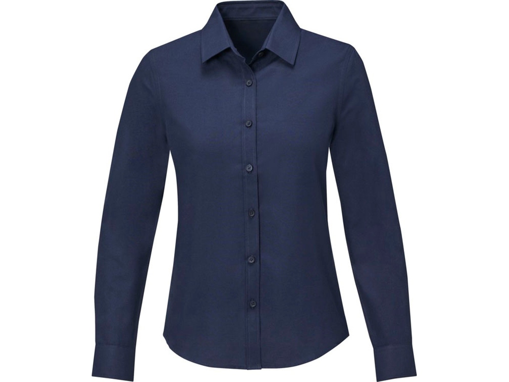 Pollux женская рубашка с длинными рукавами. Отрывной-отрезной лейбл. Регулируемая манжета рукава с одной складкой. Пуговицы в тон. Встречная складка на спинке. Ткань Оксфорд 55% хлопка, 45% полиэстера, 130гр.