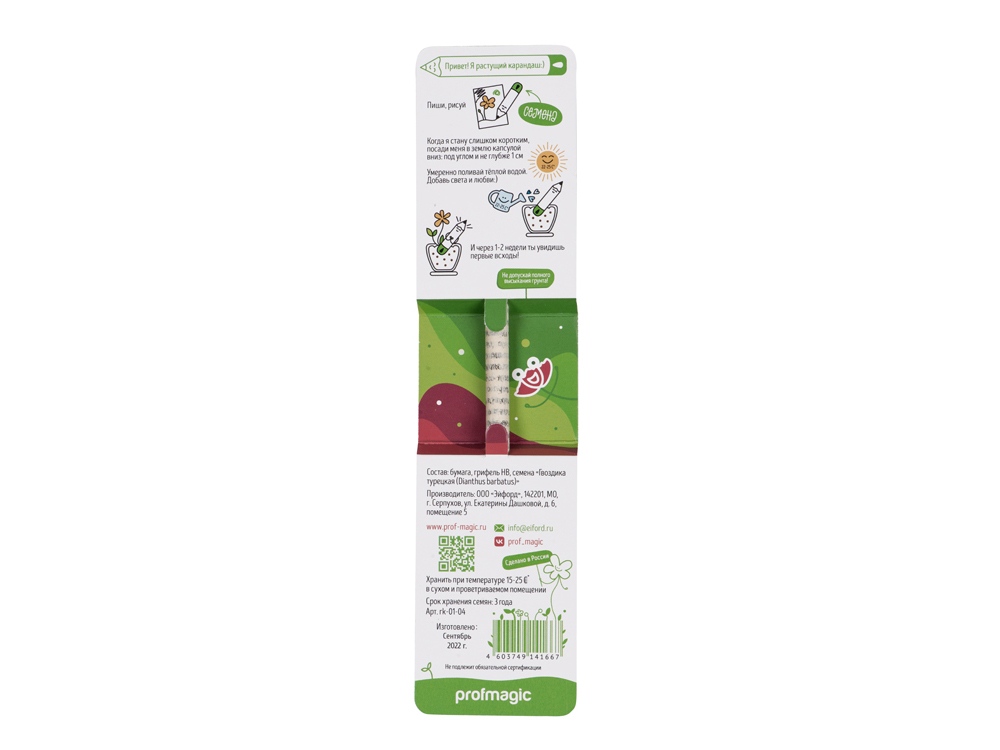 | Комплектность | карандаш из бумаги, семена Гвоздика турецкая |