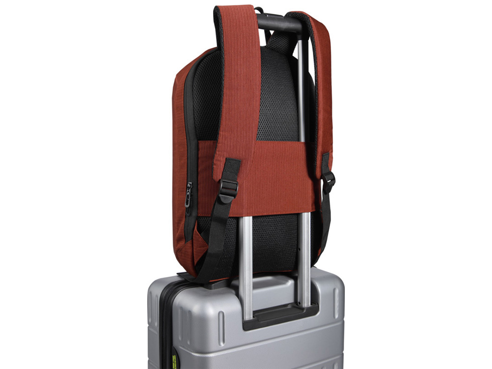 Рюкзак Luma для ноутбука 15 дюймов с защитой от кражи, изготовленный из переработанного жаккардового полиэстера с подкладкой из переработанного ПЭТ-пластика в тон, сочетает в себе умную защиту и элегантный стиль для тех, кто всегда в движении. Функции защиты от кражи включают запирающиеся молнии (замок не входит в комплект) и скрытый задний карман, который также можно использовать как ручку для крепления к чемодану. Ткань водоотталкивающая, что защитит ваши вещи от небольшого дождя. Внутри вы найдете отделение для ноутбука с диагональю экрана до 15 дюймов, имеющее мягкую подкладку для устройств, специальный карман для планшета, органайзер для ручек и организованное хранилище для аккуратного хранения самых необходимых вещей. Конструкция также включает мягкие плечевые ремни, дышащую сетчатую спинку и металлические пластины спереди. Независимо от того, едете ли вы на велосипеде на работу, проезжаете через оживленный аэропорт или направляетесь на учебу, рюкзак Luma обеспечит вам комфорт и стиль на весь день. Полиэстер из переработки, сертифицированный GRS.