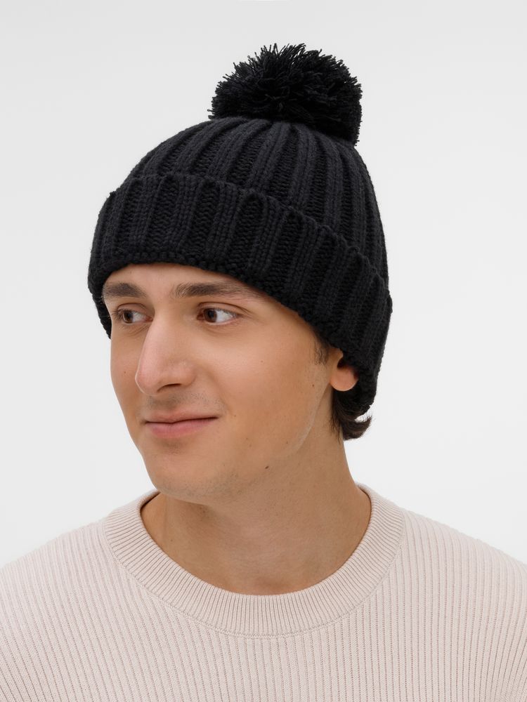 Шапка HappyGo, черная купить оптом и в розницу с нанесением логотипа в Новосибирске