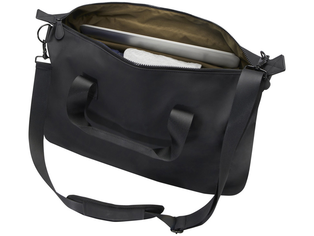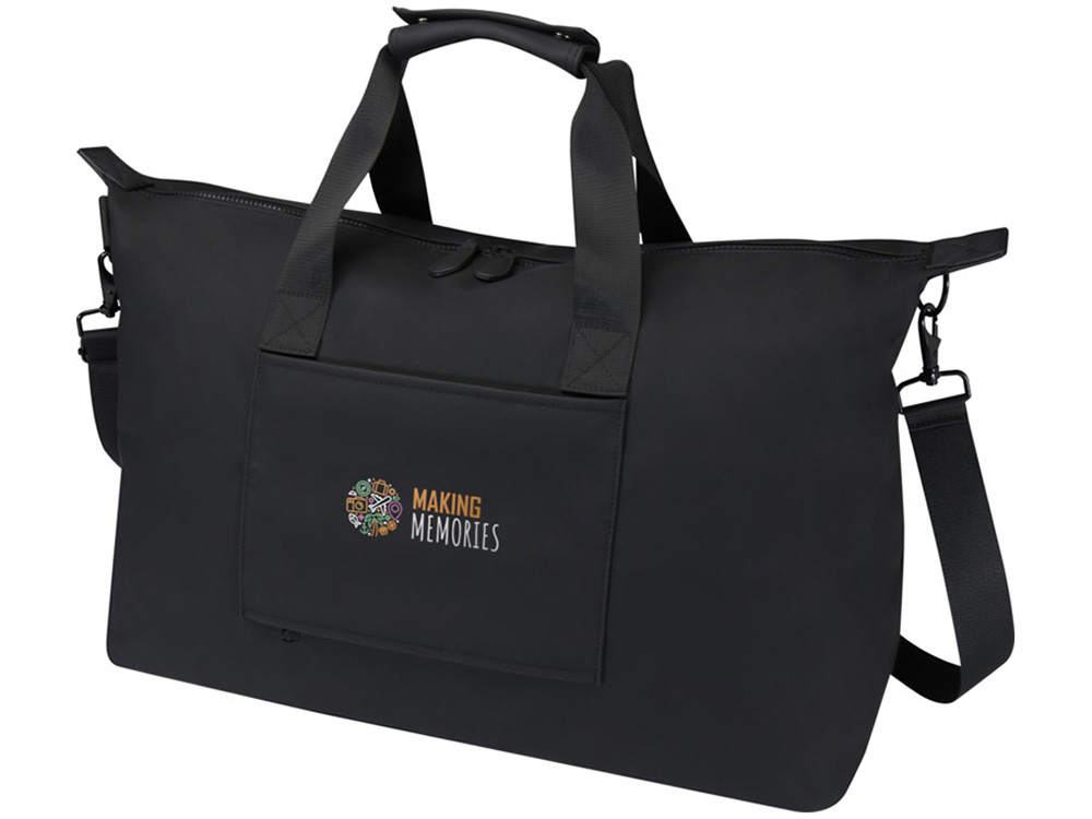 Спортивная сумка Turner на 51% изготовлена из переработанного пластика, сертифицированного по стандарту GRS, а подкладка изготовлена из 100% переработанного ПЭТ-пластика, сертифицированного по стандарту GRS. Спортивная сумка имеет мягкое отделение для ноутбука с диагональю 15,6 дюйма, внутренний ремешок для хранения бутылки с водой и карман на молнии для мелочей. Кроме того, багажный ремень на задней стороне позволяет легко прикрепить сумку к чемодану на колесиках, что делает ее удобной спутницей в путешествии. Сумку можно носить за две короткие ручки или за съемный и расширяемый плечевой ремень, длину которого можно отрегулировать для максимального удобства. Объем: 36 литр. 51% GRS recycled PU, 49% PU.