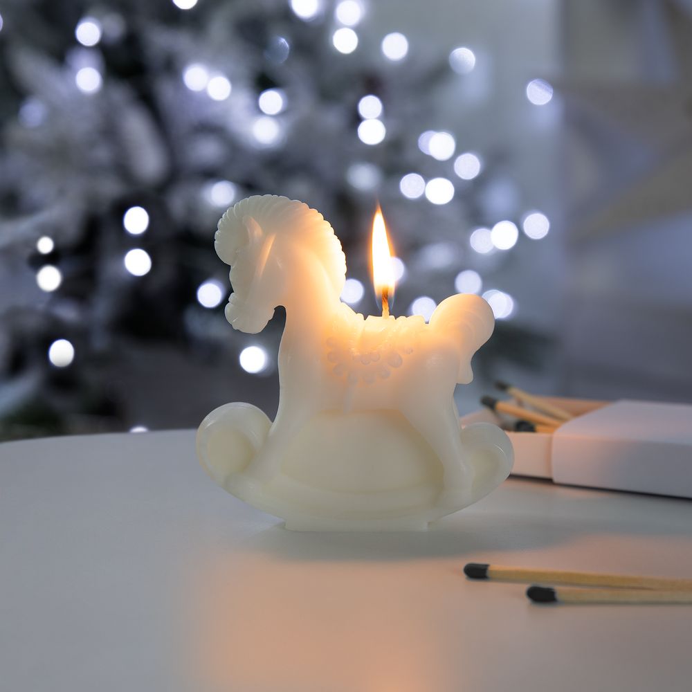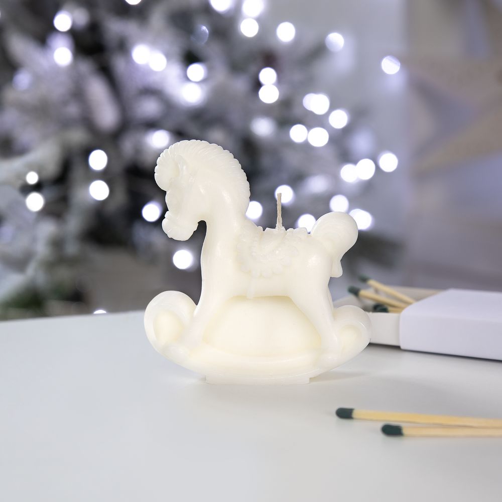 Свеча фигурная «Лошадка-качалка», белая купить оптом и в розницу с нанесением логотипа в Новосибирске