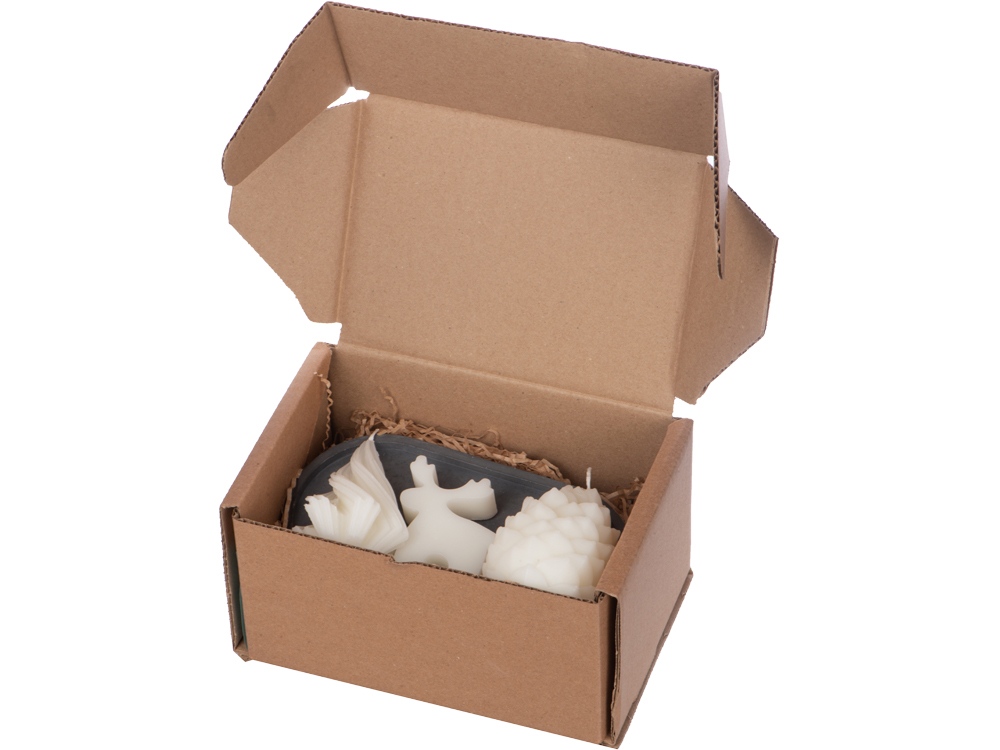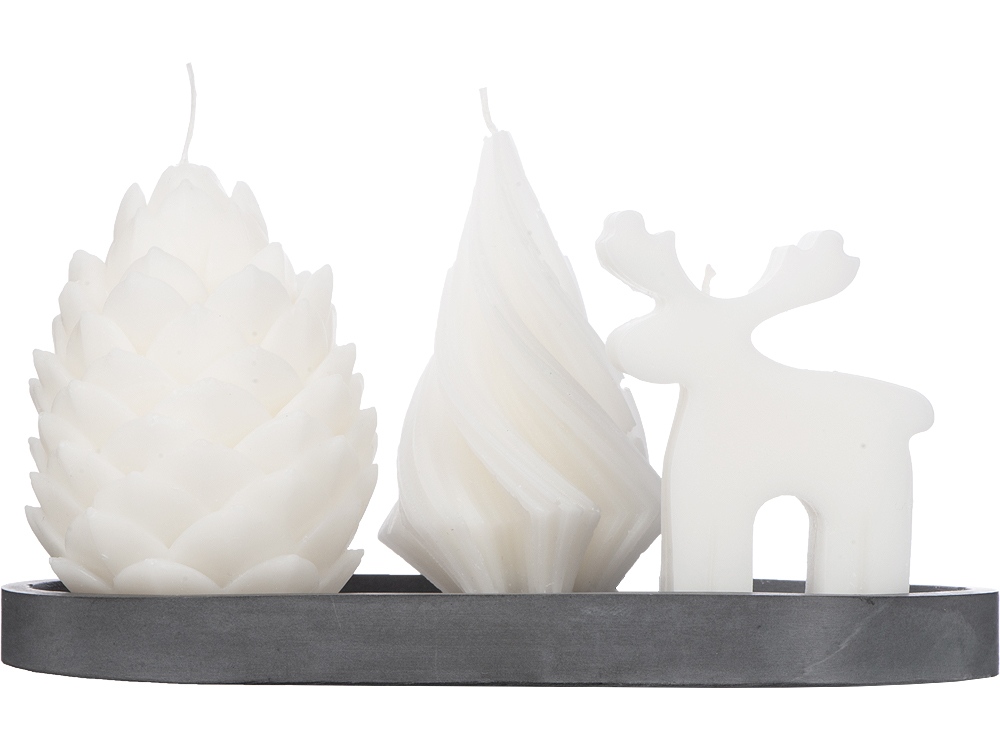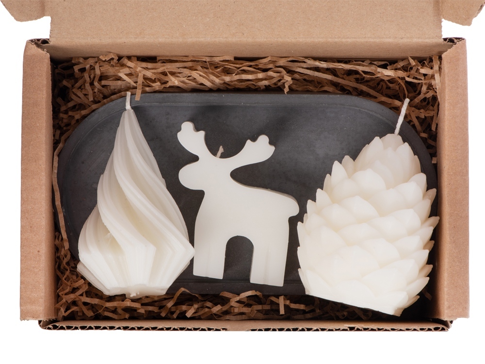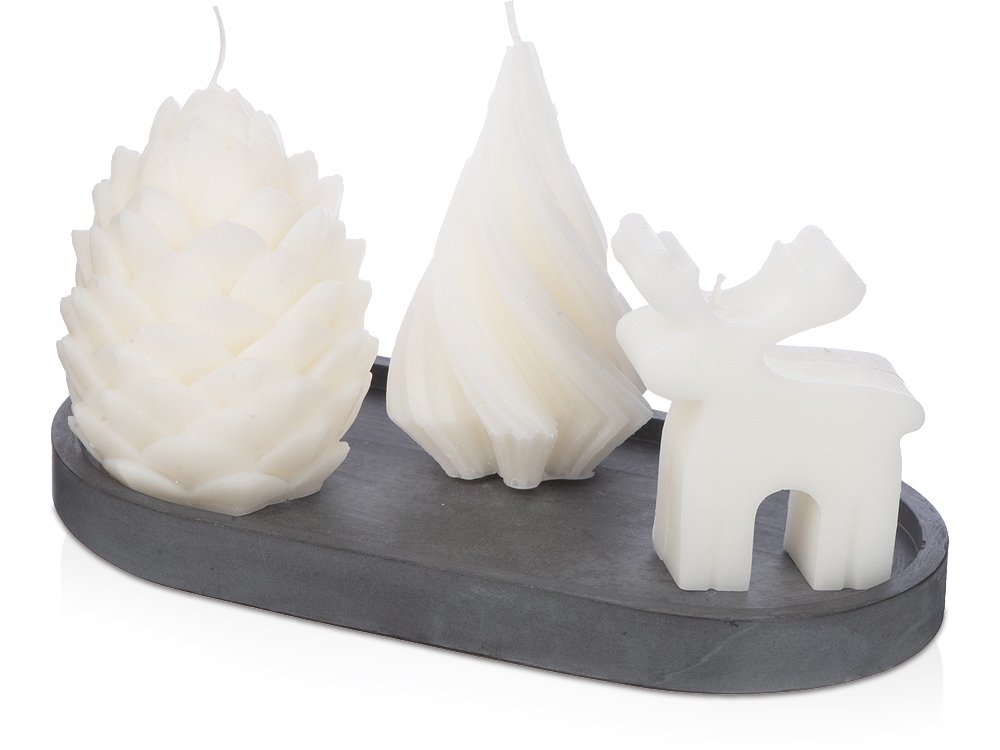 Свечи на подставке Олень, шишка, елочка купить оптом и в розницу с нанесением логотипа в Новосибирске